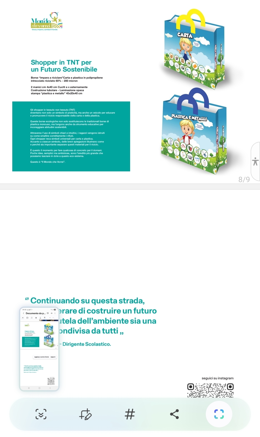 Le nostre shopper servono per fissare il messaggio nelle azioni che compiamo ogni giorno. Fare la spesa con una shopper che spiega per esempio cosa si differenziata nella plastica e cosa non e inoltre da un messaggio di fratellanza e di bellezza del mondo , diventa come un messaggio subliminale positivo da ricordare in ogni momento